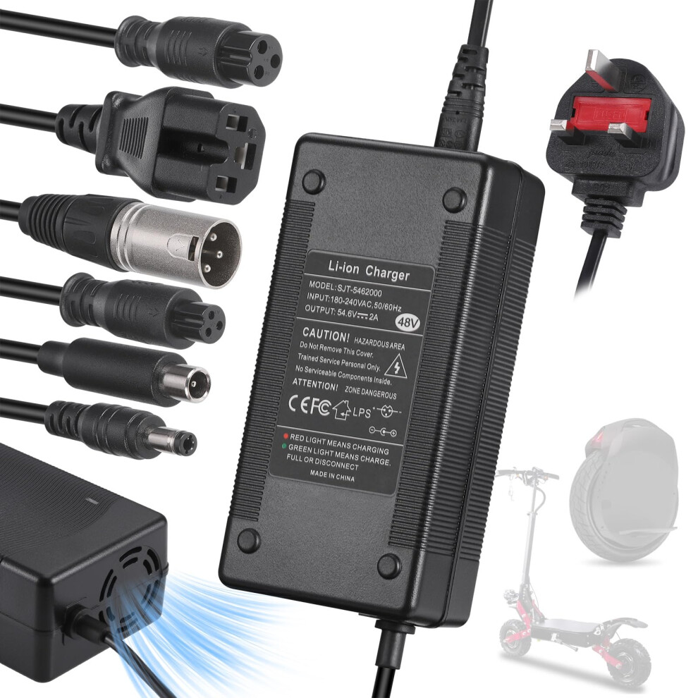 JIZZU Electric Scooter Charger 54.6V 2A, Mobility Scooter Charger, Hoverboard Adapter, 48V Electric Scooter Fast Charger With 6 Connections for