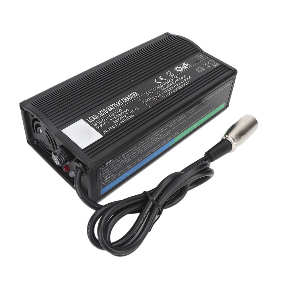 Mobility Scooter Charger 24V 5A HP8204B with LED Indicators, Compact Size
