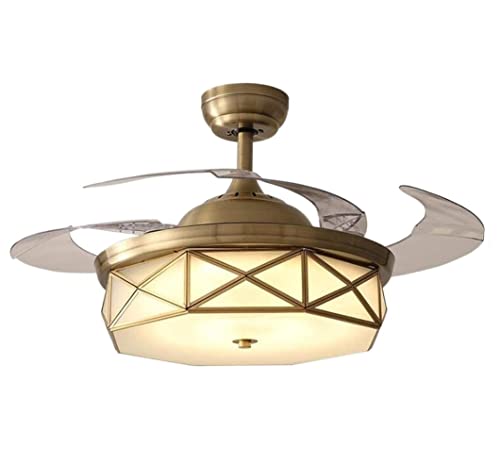 CFWSHJ Modern Bedroom Fan Gold 42" Ceiling Fan Light Modern Ceiling Fan Remote Control Retractable Blades Living Room Bedroom Restaurant Fan Light Living Room Lighting