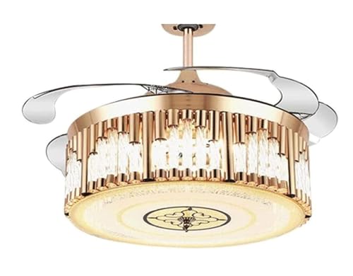 CFWSHJ Modern Bedroom Fan Modern Ceiling Fan Crystal Ceiling Fan Light Retractable Blades Ceiling Fan Living Room Fan Light Living Room Lighting(Dual Control,48 inch)