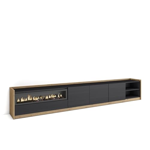 Skraut Home | TV Unit, Stand Cabinet | Entertainment Center | 310x50x37 cm | For TVs up to 80" | Electric Fireplace | Modern Style | Black and Oak