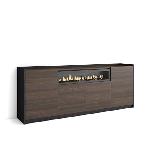Skraut Home | Sideboard cabinet | Storage cabinet living room | 207x80x37 cm | 4 Doors | Electric Fireplace | Modern Style | Black and Oak