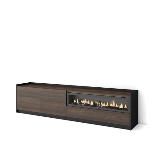 Skraut Home | TV Unit, Stand Cabinet | Entertainment Center | 207x50x37 cm | For TVs up to 80" | Electric Fireplace | Modern Style | Dark Oak and Black