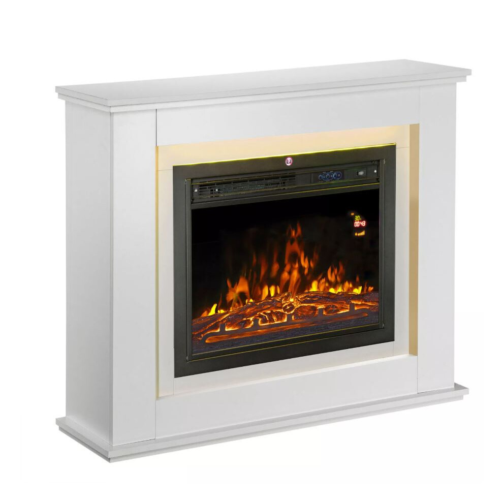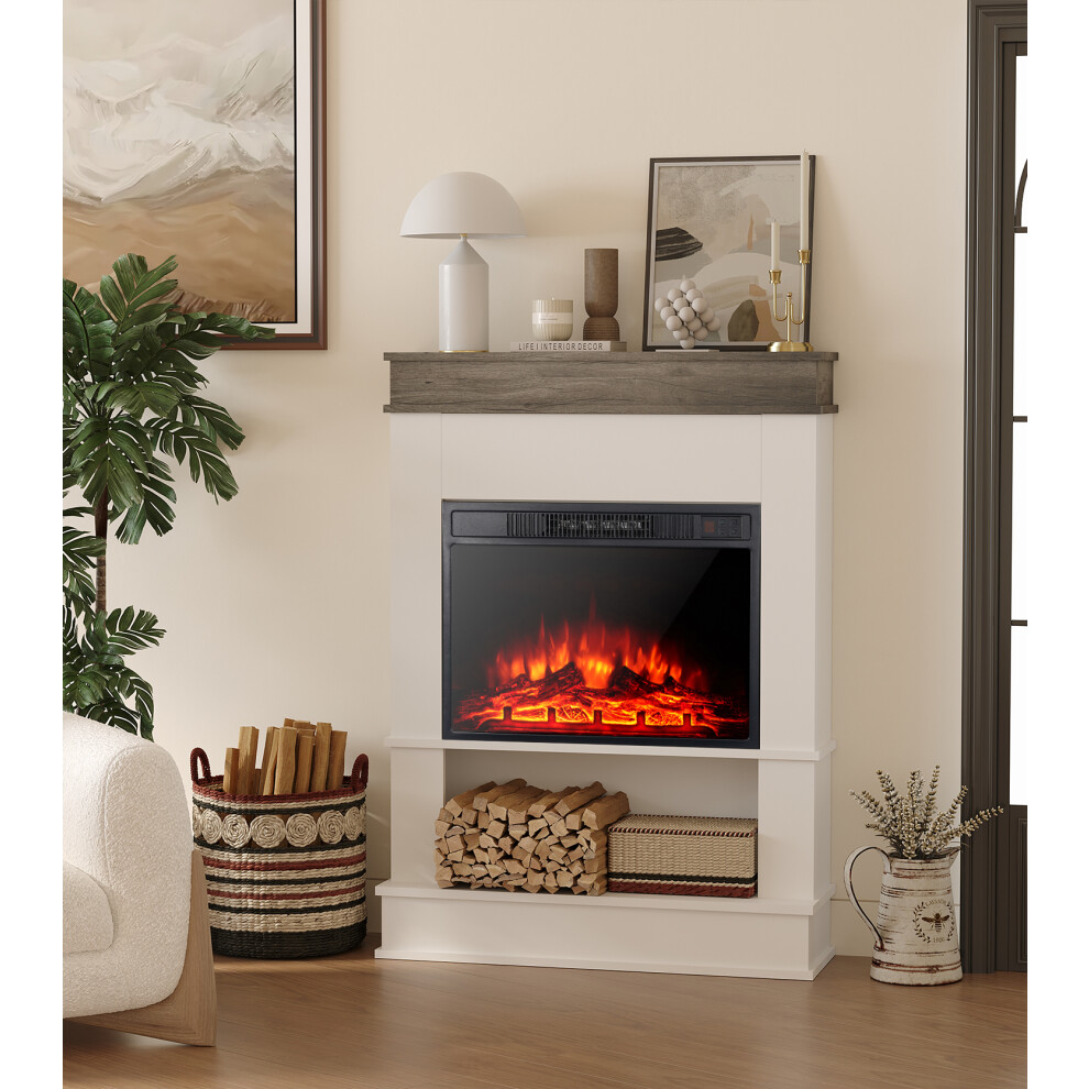(Fire Surround White) Modern Electric Fireplace with Remote Control & LED Log Fire Effect