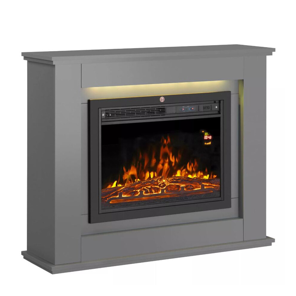 (Fire Surround Grey) Modern Electric Fireplace with Remote Control & LED Log Fire Effect