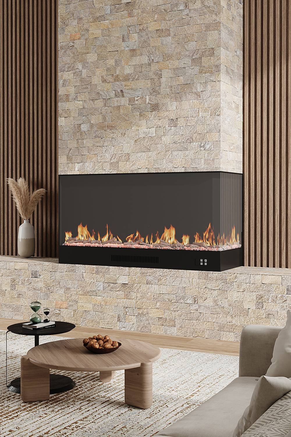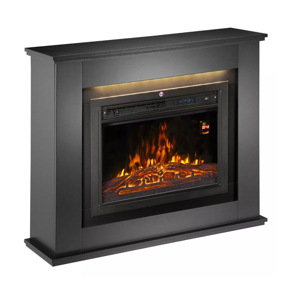 (Fire Surround Black) Modern Electric Fireplace with Remote Control & LED Log Fire Effect
