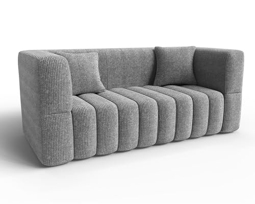 RUMMY High-rebound Soft Foam Sofa, Small 2 Seater with 2 Pillows for Living Room, Bedroom, Office, Comfy Couch With Armrests, Modern Grey Love Seat