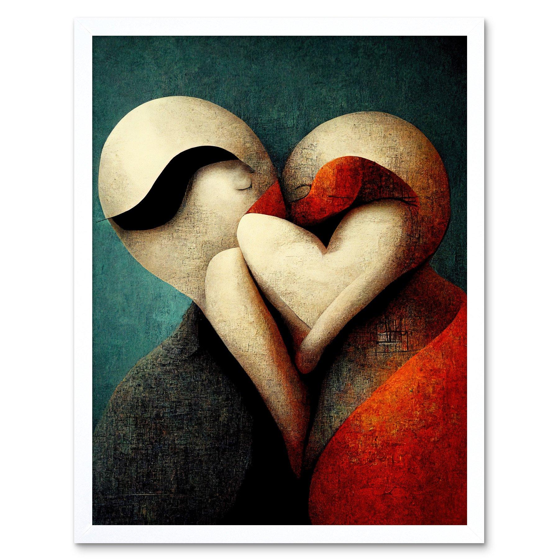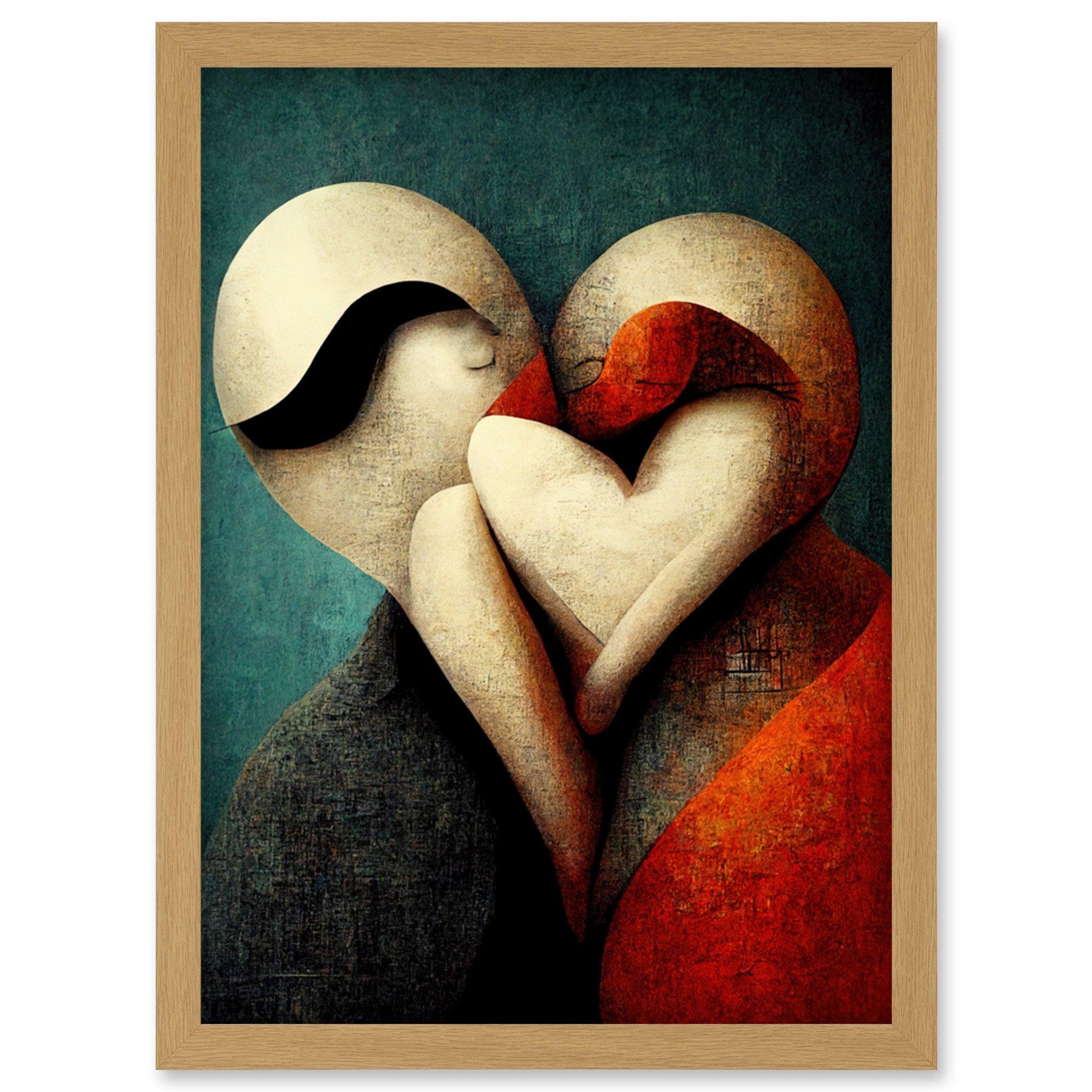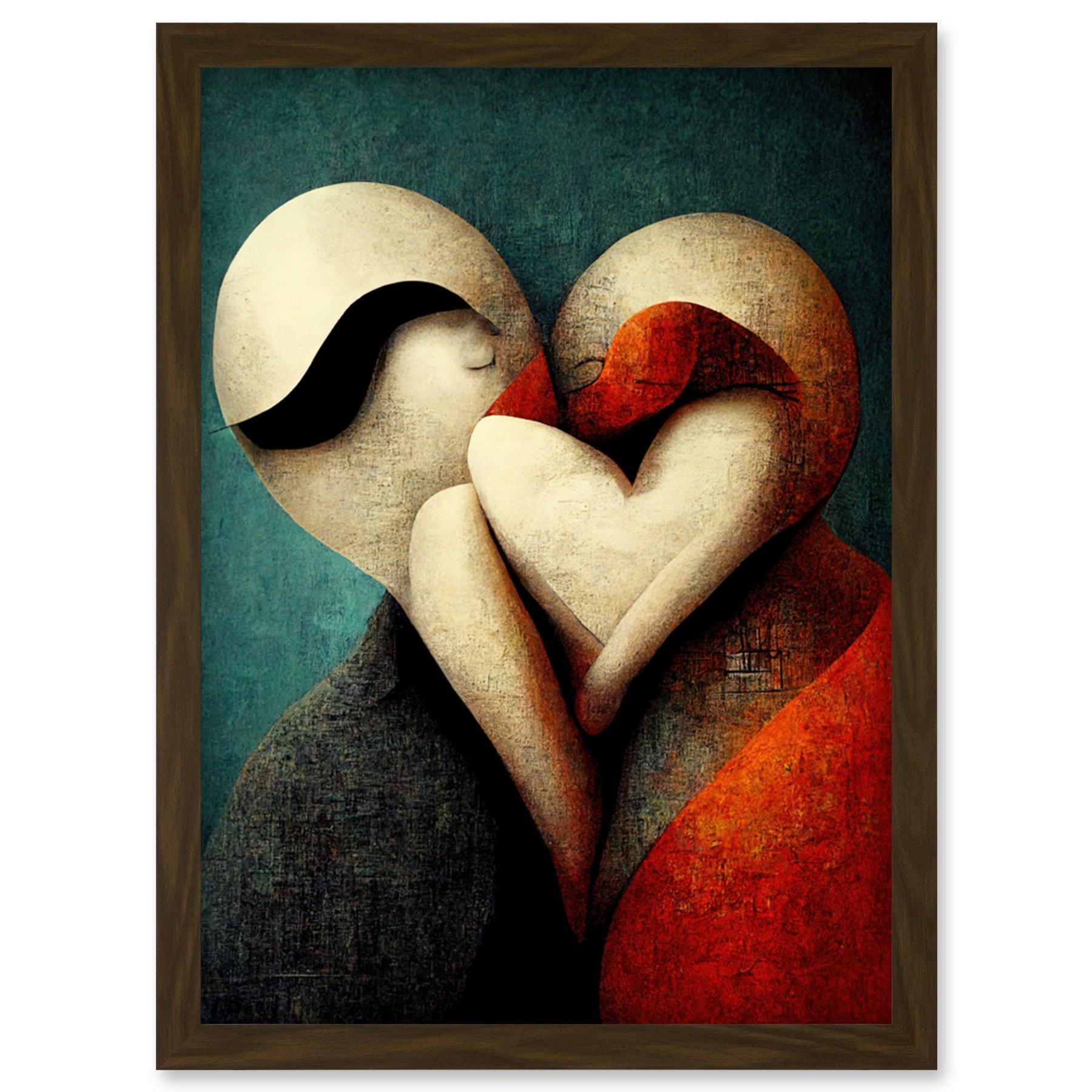 Abstract True Love Modern Teal Coral Black Artwork Framed Wall Art Print A4