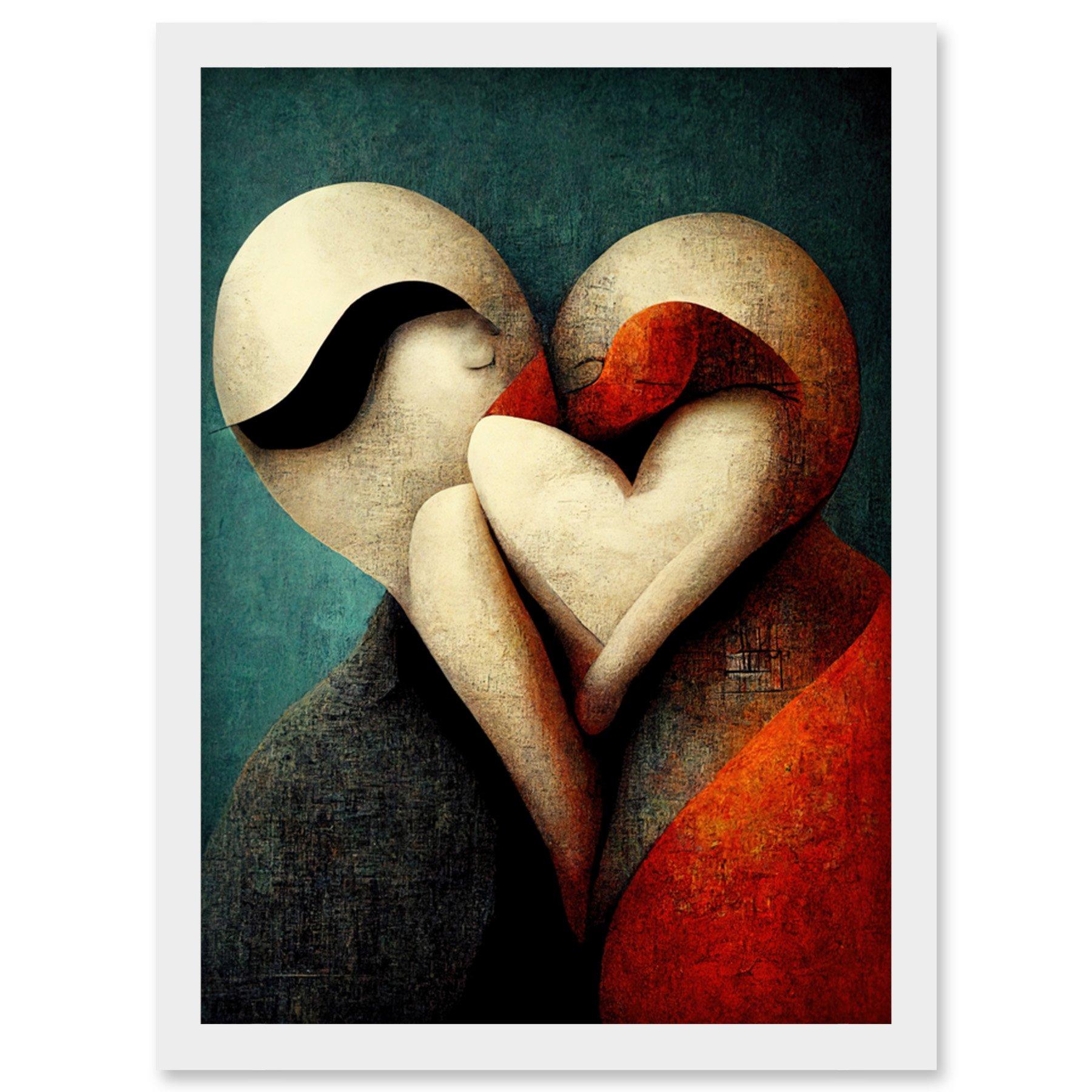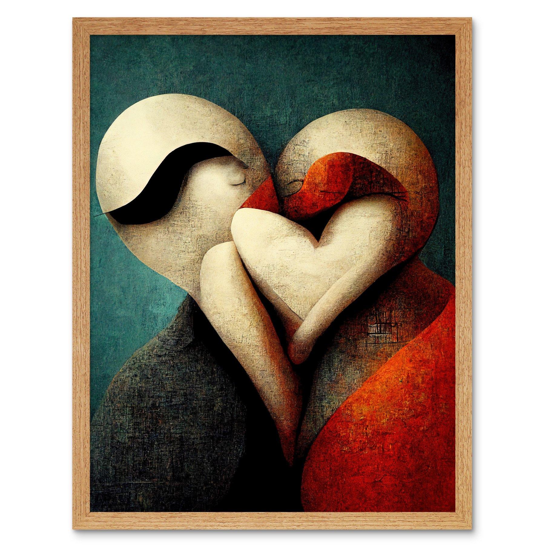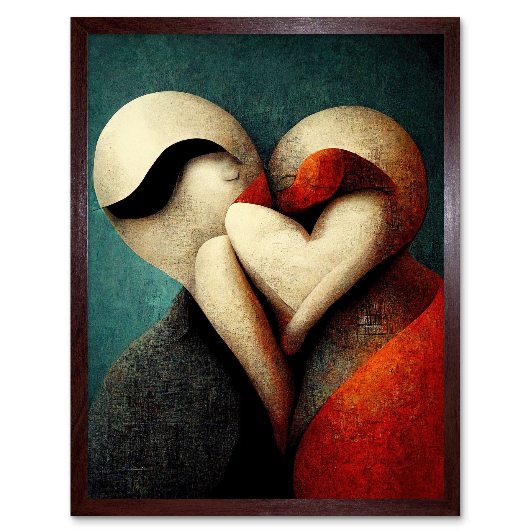 Abstract True Love Modern Teal Coral Black Artwork Framed Wall Art Print A4
