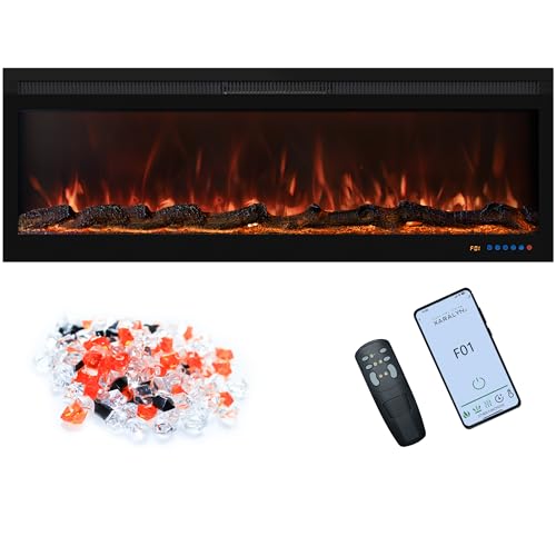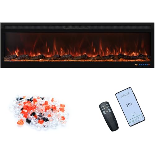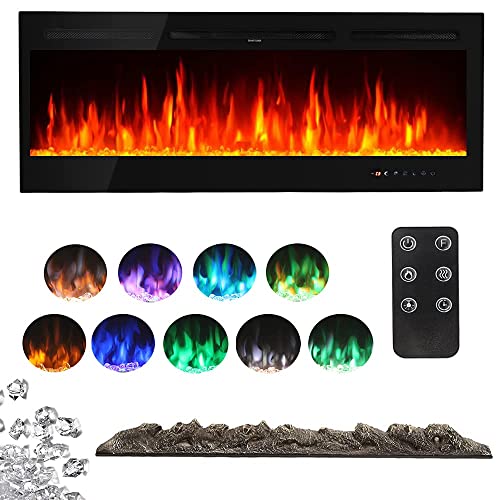 INMOZATA Electric Fireplace Wall Mounted Recessed 60inch Electric Fire Heating Insert into Wall Electric Fire Heater Touch Remote Control 9 LED Color Flame Effect, Crystal with Log Set(60inch)