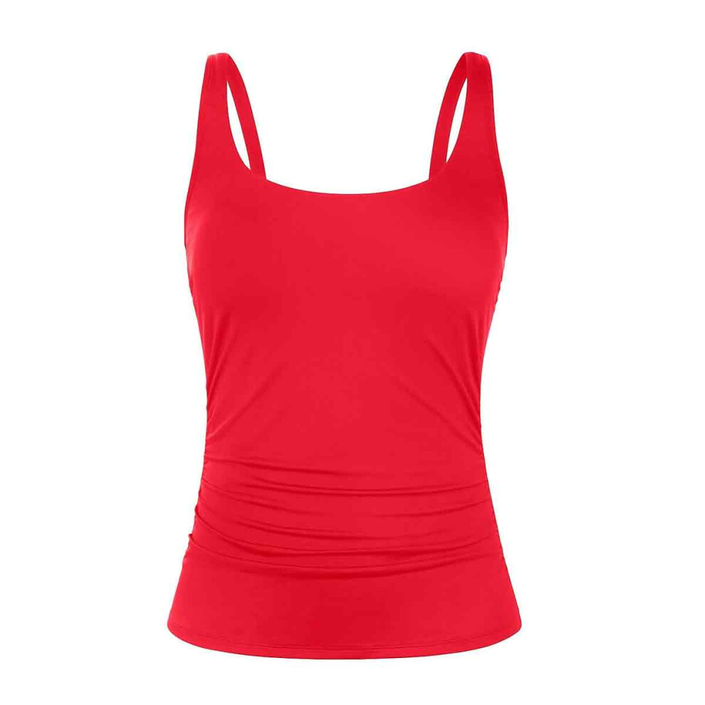 Tankini Tops for Women Swimwear Top Only Tummy Control Bathing Suit Top No Bottom Modest Swim Top(Red,XXL)