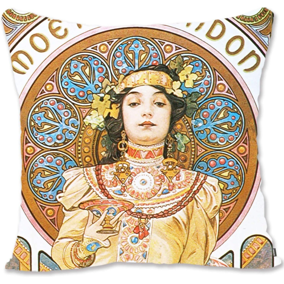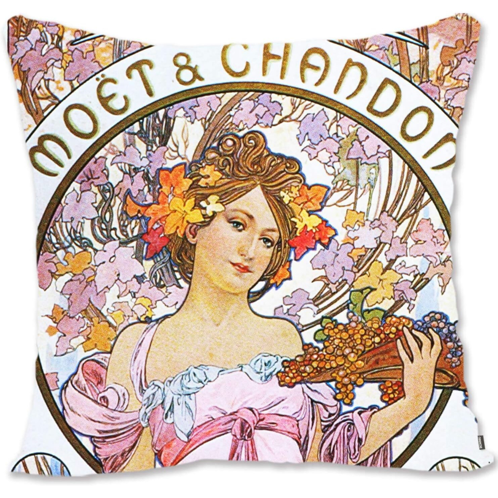 Decorative Throw Pillow Case Cover Vintage Girl Portrait Art - Mucha - Gismonda AL-Moet & Chandon 'Champagne White Star' Al