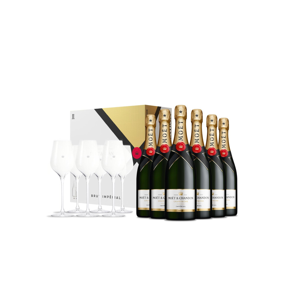 Moët & Chandon Impérial Brut Champagne 6x75cl, Signature Lehmann Flutes 6x25cl Gift Set
