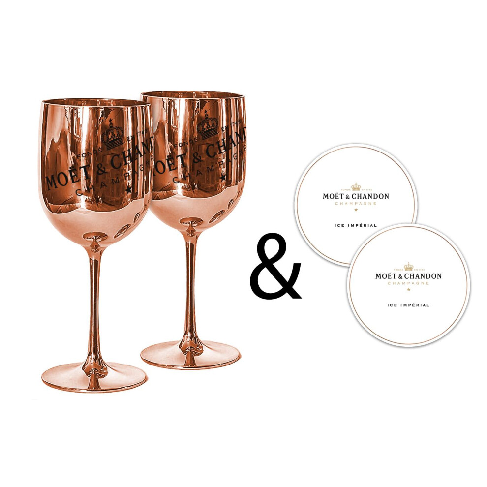 Moet & Chandon Rose Gold Ice Imperial Acrylic Champagne Glasses & Coasters [x2]