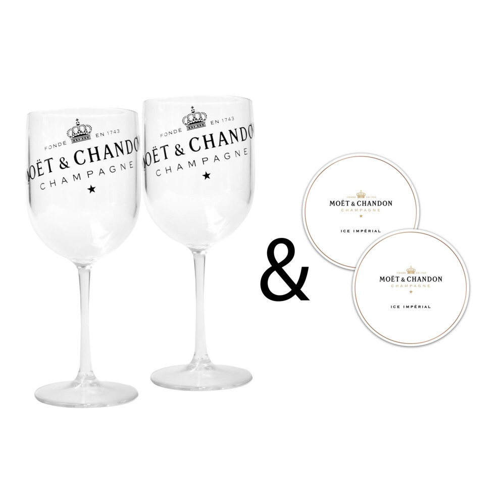 Moet & Chandon Clear Ice Imperial Champagne Glasses with Coasters [x2]