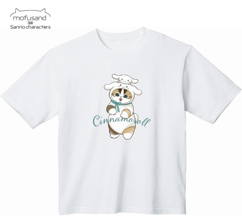 Mofusand x Sanrio Cinnamoroll Characters Big T-shirt White One Size Fits All Tee