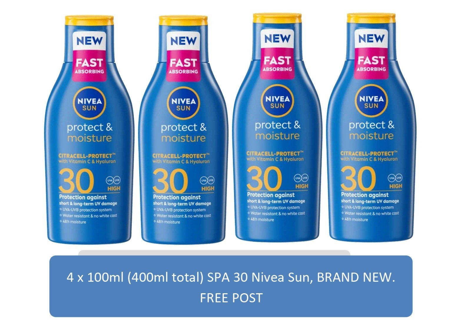 4 x Nivea Sun SPF30 Sun Cream Lotion Moisture Lock (400ml total) New, FREE POST
