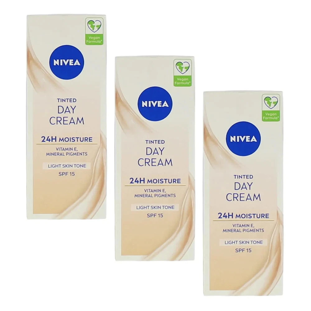 3-Pack Nivea Tinted Day Cream Light Skin Tone SPF15 24H Moisture Vitamin E 50ml