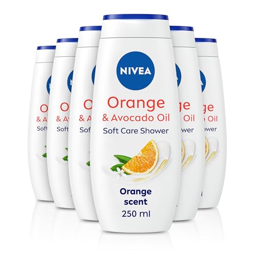 NIVEA Indulgent Moisture Orange Shower Cream 250 ml Pack of 6 Moisturising Shower Gel with Avocado Oil Luxurious Body Wash for Women Body Wash