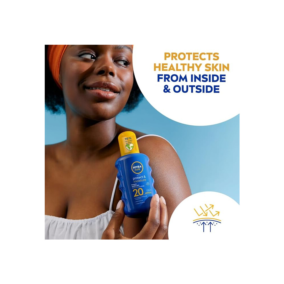 NIVEA SUN Protect Moisture Sun Spray SPF 20 200 ml Sun Cream with Vitamin E Provides 48 Hour Moisture and Immediate UVA and UVB Protection