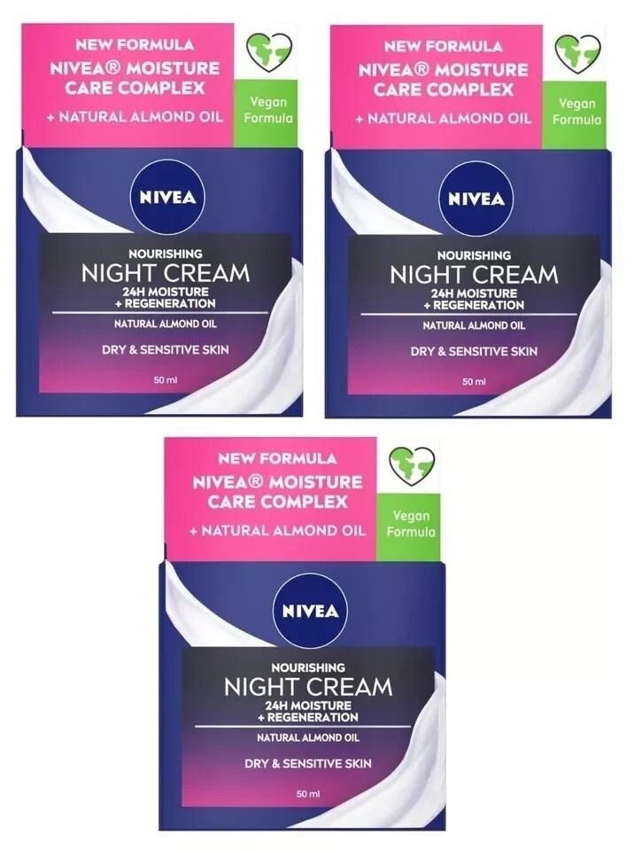 3 x Nivea Nourishing Night Cream 24H MOISTURE+REGENERATION DRY & SENSITIVE SKIN