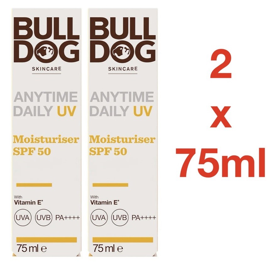 Bull Dog Skincare Anytime Daily UV Moisturiser SPF 50 with Vitamin E - 2 x 75ml