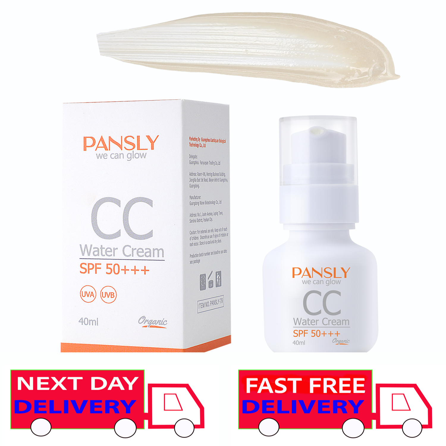 Pansley Suns CC Water Cream Moisturiser , SPF 50+++ Organic, UVA , UVB