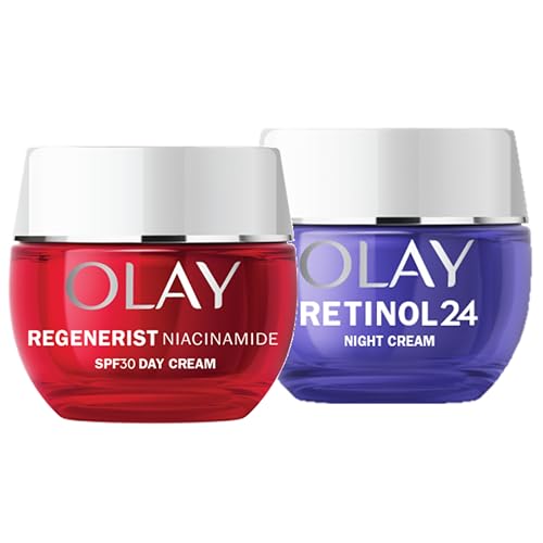 Olay Skincare Set: Niacinamide Face Moisturiser SPF and Retinol 24 Night Cream, Anti Ageing Skin Care 50ml + 50ml