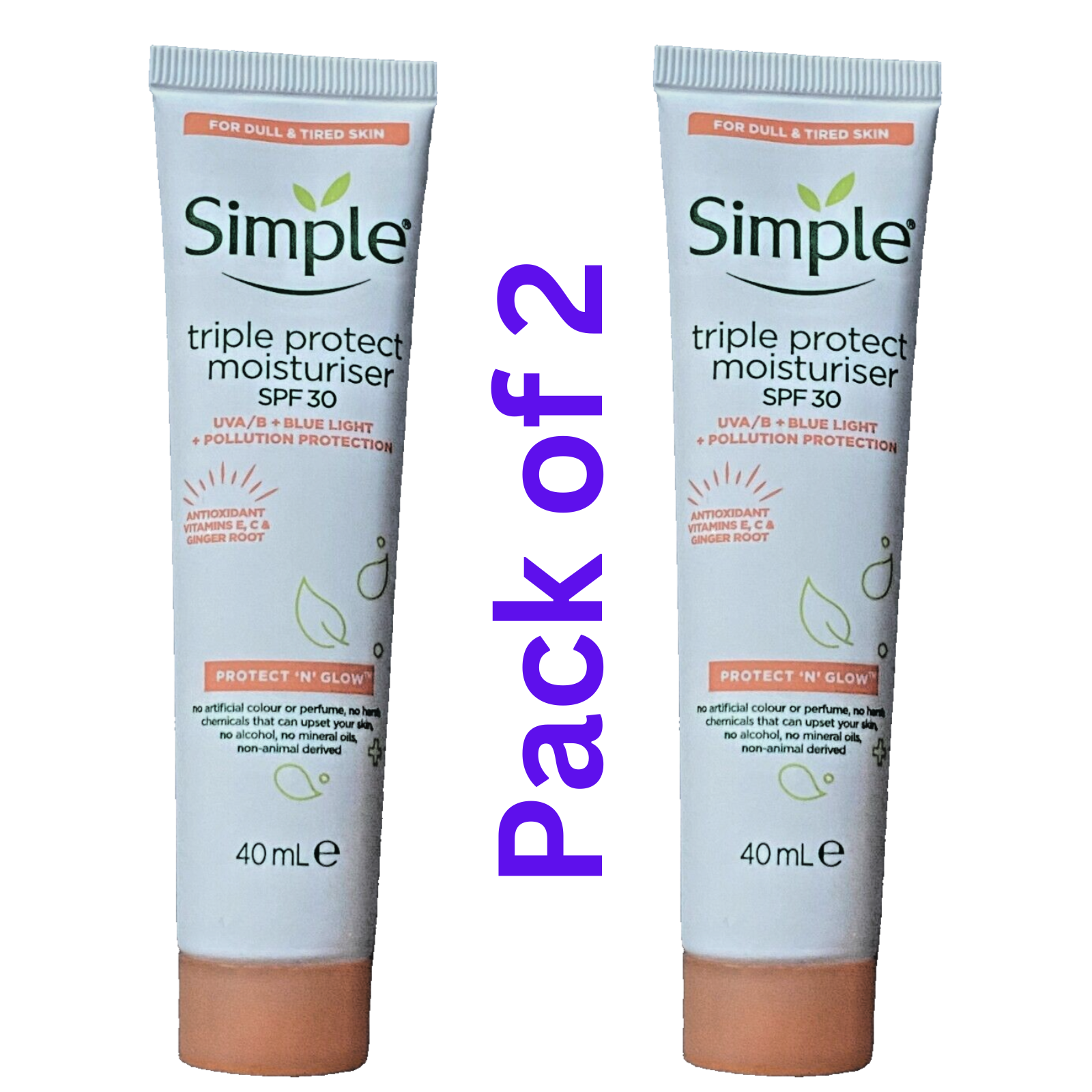 2X Simple Triple Protect Moisturiser SPF 30 40ml New