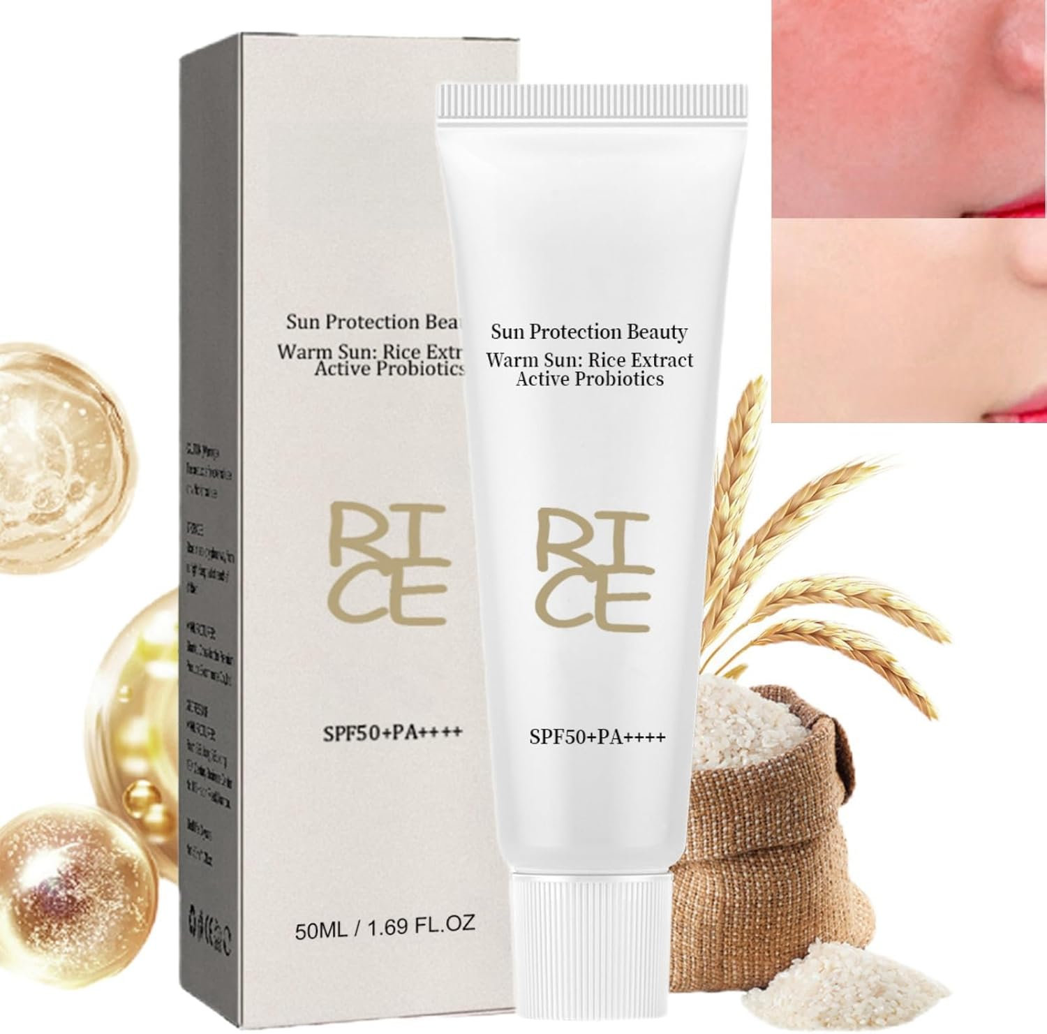 Rice Sunscreen SPF 50+, Relief Sun Rice + Probiotics SPF 50 + Sun Cream, Moisturizing Organic Suncream Factor 50 for Face Body, Korean Sunscreen, Refreshing, Lightweight, 50ml
