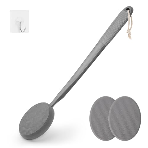Lotion Applicator for Back, Feet & Legs, Long Plastic Handle Moisturizer Cream, Self Tanning, Sunscreen, Ointment, Medicine Back Applicator for Elderly Men or Women with 3 Washable Pads (Grey)