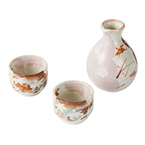 FBSHAD Exquisite Sake Set Japanese 3 Piece Sake Cup Set Traditional Porcelain Pottery Ceramic 1 Sake Pot, 2 Sake Cup,Tableware