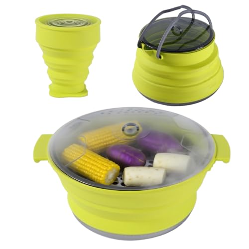 Camping Cook Set – Heat-Resistant Foldable Silicone, 3 Pieces Cooking Kit, Outdoor Portable Kitchen | Kettle Pot Cup, Camping Cookware for Dining Adventure Trekking Traveling Hiking