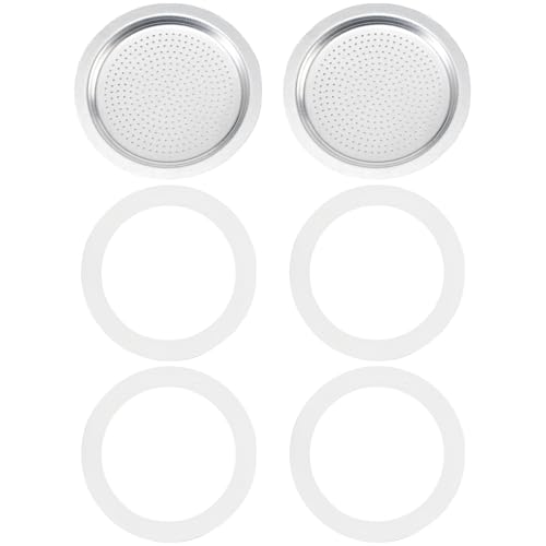 Wjelet Moka Pot Gasket Replacement Kit - Includes 4 Food Grade Silicone Seals & 2 Filter, Compatible with 6 Cup Espresso Maker, Stovetop Coffee Maker, Durable Spare Parts for Bialetti Moka Pot