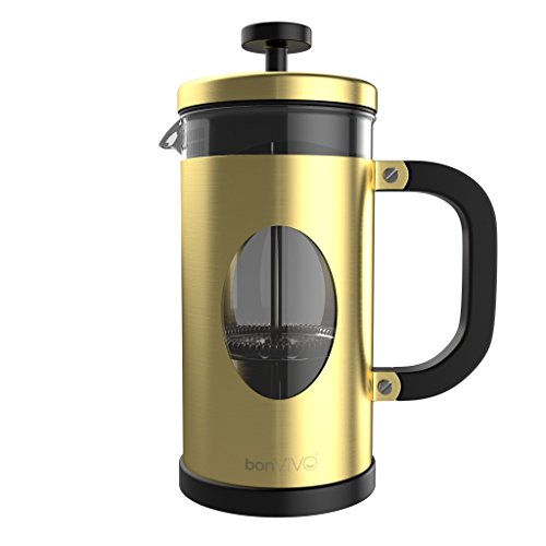 bonVIVO Cafetiere GAZETARO I 350ml, 3 Cup French Press Coffee Maker – Stainless Steel Coffee Press w/Bonus Scoop & Replacement Filter Mesh – Heat-Resistant Coffee Pot for Ground Coffee Gold Finish