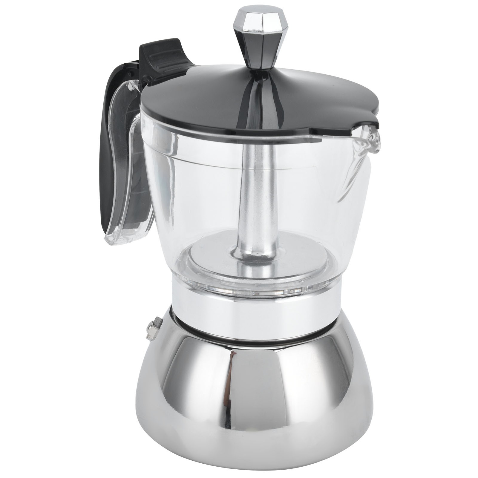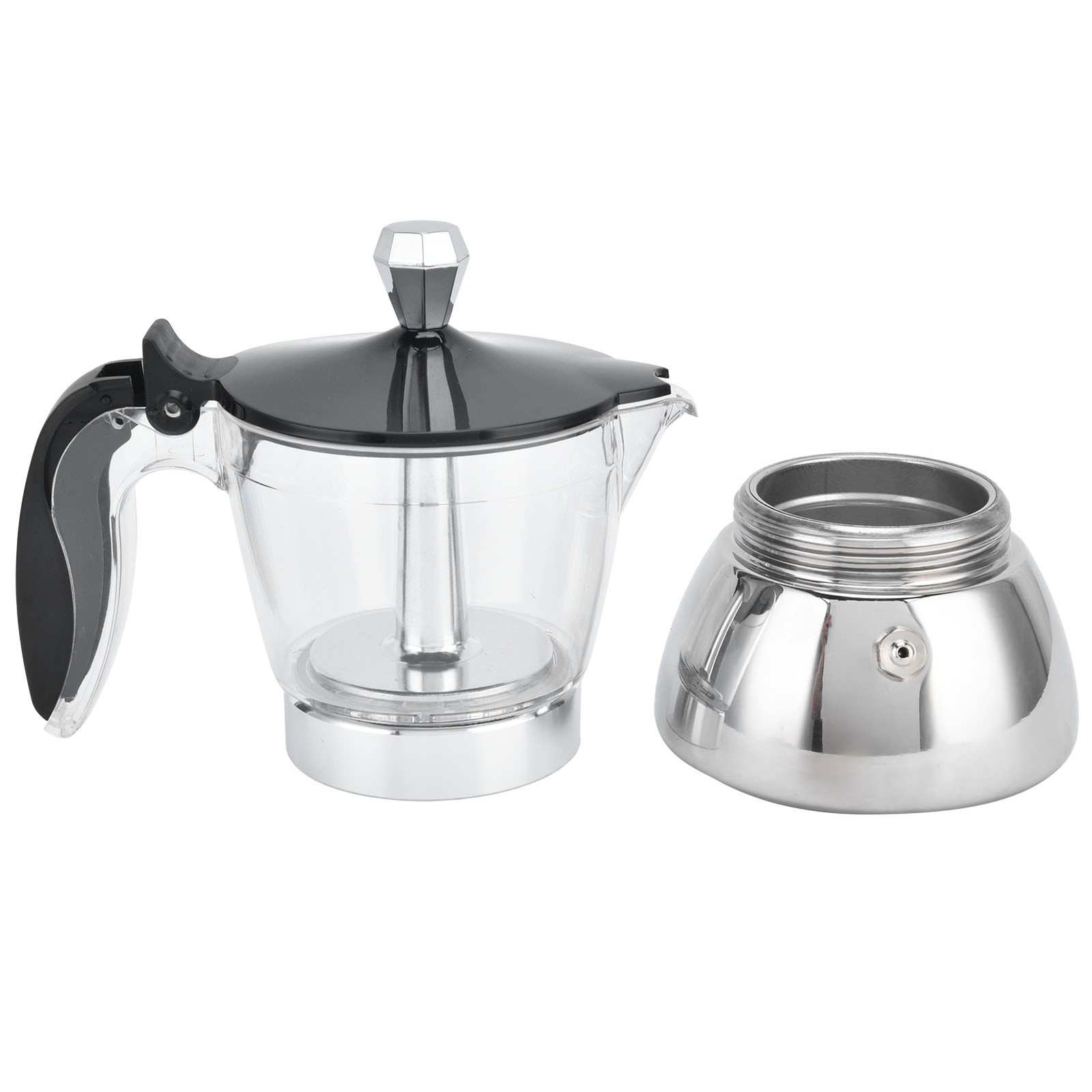 Stovetop Coffee Maker 6 Cup Moka Pot Clear ABS Top Stainless Steel Coffee Mak H