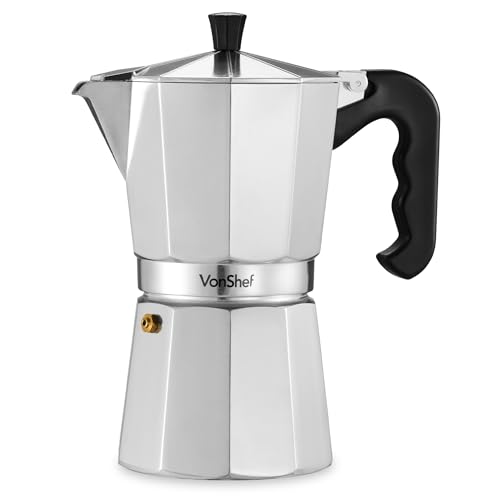 VonShef Stovetop Coffee Maker, 9 Cup Aluminium Italian Espresso Maker, 450ml Gas & Electric Stove Top Moka Pot with Replacement Gasket & Filter
