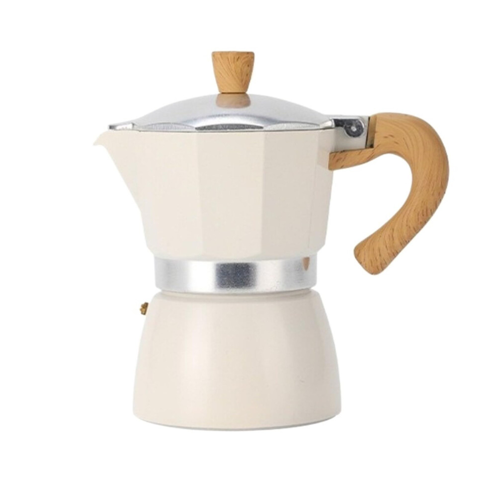 Moka Pot 3 Cup Aluminum Stovetop Espresso Maker with Wooden Handle White 150ml Italian Style