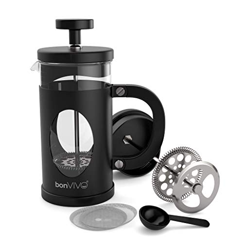 bonVIVO Cafetiere GAZETARO I 350ml, 3 Cup French Press Coffee Maker – Stainless Steel Coffee Press w/Bonus Scoop & Replacement Filter Mesh – Heat-Resistant Coffee Pot for Ground Coffee Black