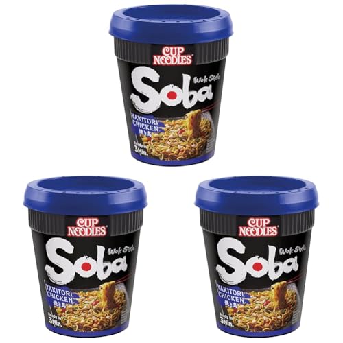 NISSIN Cup Noodles, Soba Wok Style Yakitori Chicken Flavour, 89 g Pot (Pack of 3)