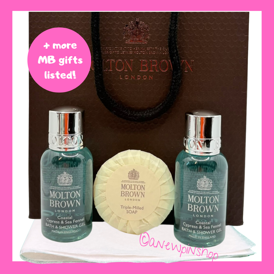 MOLTON BROWN Coastal Cypress Bath Gel 50ml Travel EDT 7.5ml Soap Gift Bag Set