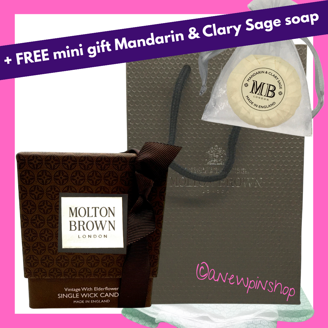MOLTON BROWN Vintage With Elderflower Candle Single Wick 180g NEW Gift Set Bag