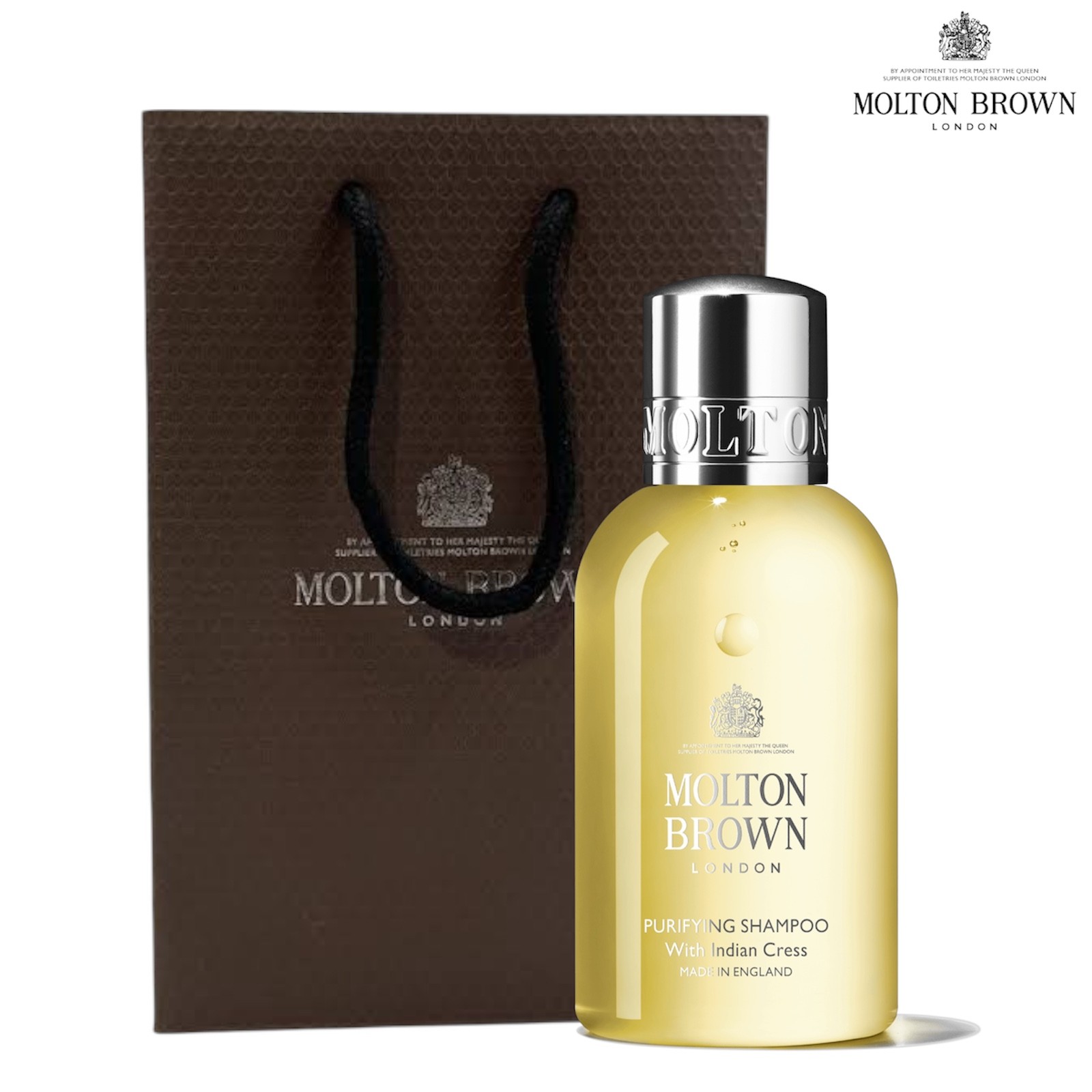 MOLTON BROWN Indian Cress Purifying Shampoo 100ml LUXURY GIFT SET NEW + Bag