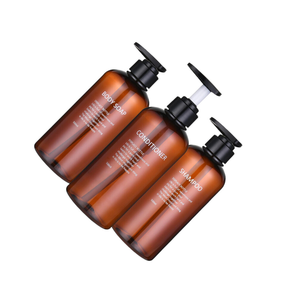 (Brown, 500ml) Shampoo And Conditioner Dispenser Pump Bottles Refillable Liquid