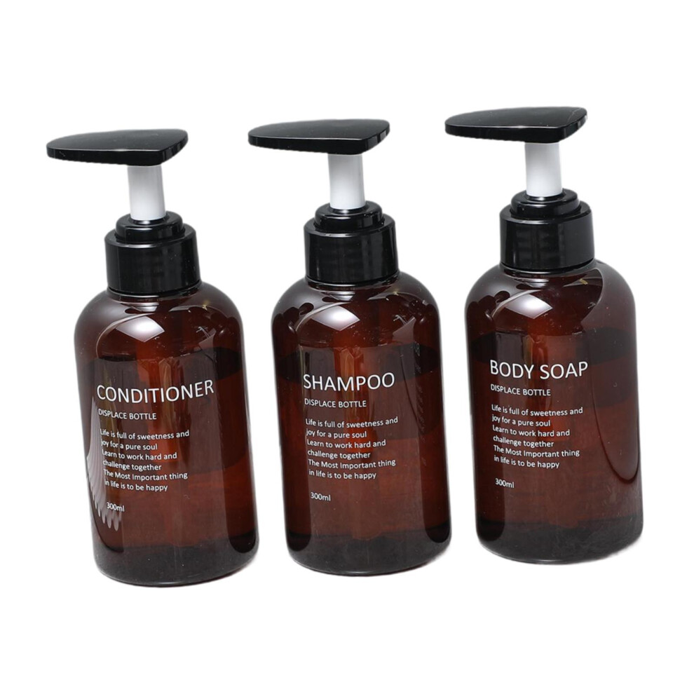 Stylish Shampoo and Conditioner Dispenser, Set of 3, Modern 600ml 21oz, Brown