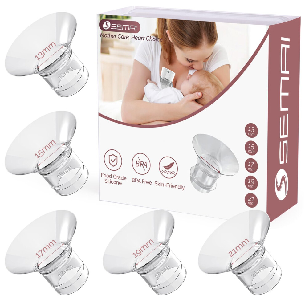 semai Flange Inserts 13/15/17/19/21mm Compatible with Medela/Momcozy S12 Pro/S9 Pro/S12/S9/Spectra/Elvie 24mm Breast Pump Flanges, Reduce 24mm Nipple