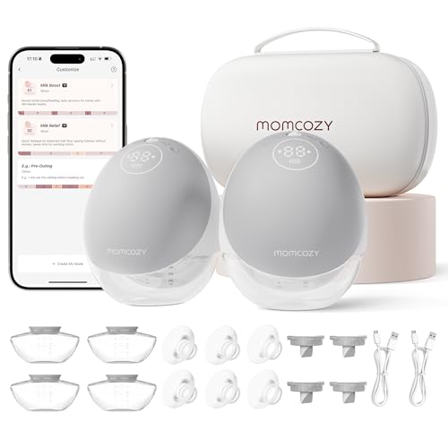 Momcozy M9 Hands Free Breast Pump Mobile Flow, Electric & App Control, Personalized Multi-Modes & 15 Levels, Wearable Pump Breastfeeding, 24mm (Cozy Gray, 2 Count)