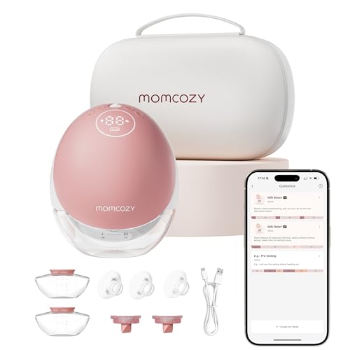 Momcozy M6 Breast Pump Hands Free Mobile Style, Wearable Breastfeeding Pump Ideal Rhythm for More Milk, DoubleFit Flange More Fit & Discreet with 3 Modes & 9 Levels, 24mm(1 Count, Cozy Red)