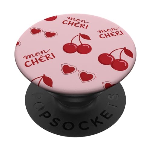 Mon Cheri Y2K Cherry Pink Preppy Coquette Aesthetic Pattern PopSockets Adhesive PopGrip