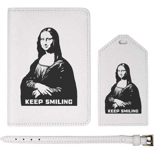 Azeeda 'Keep Smiling Mona Lisa' Passport Cover & Luggage Tag Travel Set (PA00042281)